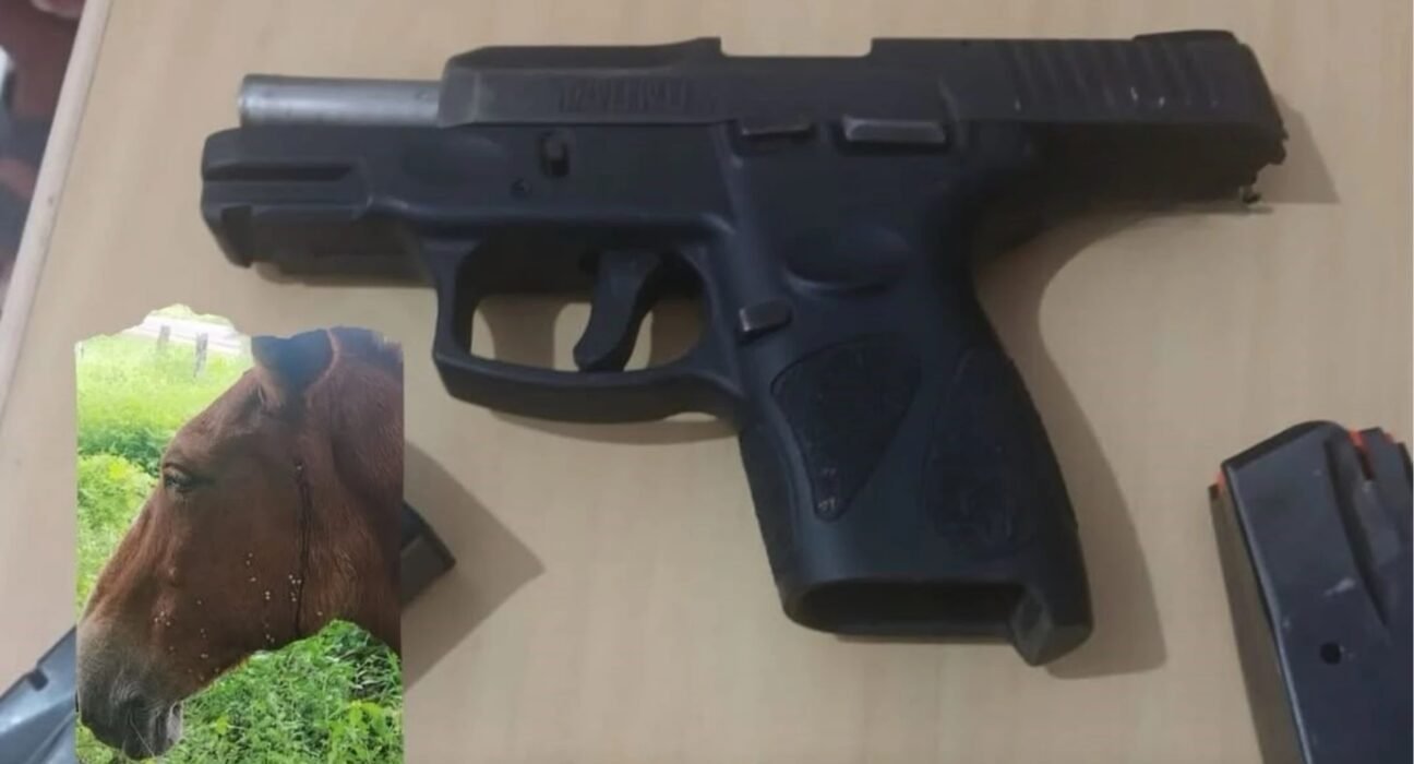 De acordo com o 15º Batalhão de Polícia Militar, o homem foi encontrado em sua residência e admitiu ter feito os disparos que atingiram um burro. Durante a abordagem, os policiais também apreenderam uma pistola calibre .40, além de dois carregadores e munições.